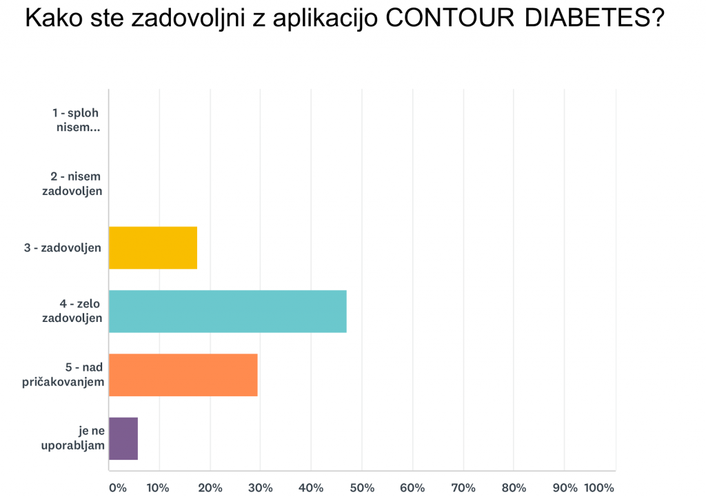 Z merilnikom CONTOUR®NEXT ONE je zadovoljnih 94,11 %, z aplikacijo CONTOUR®DIABETES pa 94,12 % vprašanih.