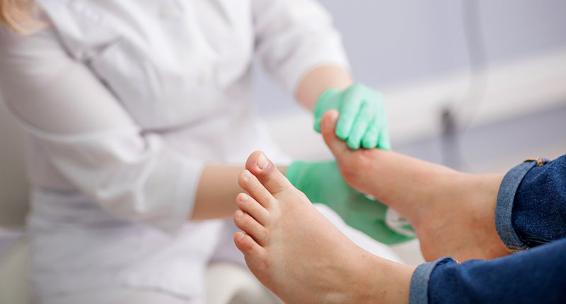 Ob poškodbi ali rani na stopalu, ki se ne zaceli v treh dneh, ali ob prisotnih znakih lokalnega vnetja.