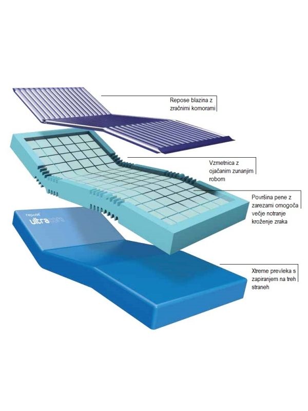 Posteljna vzmetnica Repose® Ultracore zagotavlja odličen prenos pritiska na površino in kar največje udobje ter kakovostno in dolgotrajno uporabo. Namenjena je osebam, ki veliko časa preživijo v postelji, saj pomaga pri preprečevanju nastanka poškodbe/razjede zaradi pritiska (preležanin) oz. lajša bolečino in počutje v fazi zdravljenja.