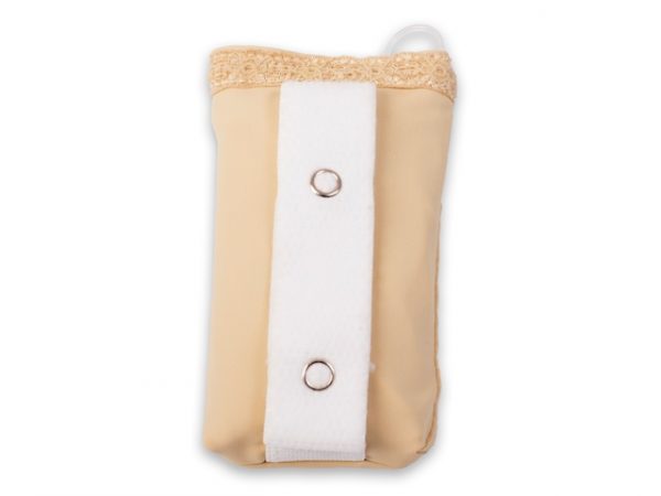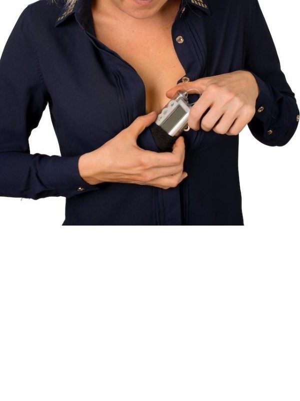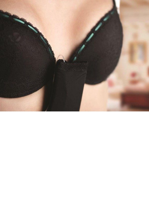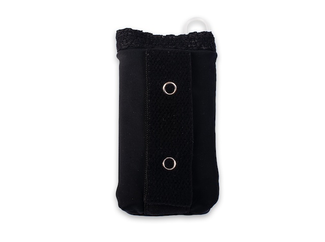 Torbica za inzulinsko črpalko se z velcro trakom, ki je prišit na nedrček, namesti na nedrček in omogoča diskretnost.