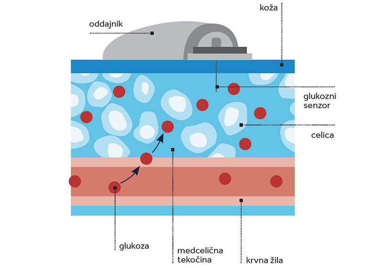 Merjenje glukoze v krvi pomembno dopolnjuje delovanje sistema za neprekinjeno merjenje.