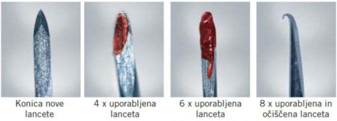 Redno menjajmo lancete. Uporabljena lanceta ni več sterilna, z vsakim vbodom je bolj topa, vbod pa bolj boleč.